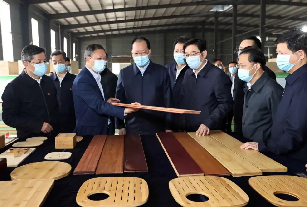 2025年6月16日,省政協副主席虢正貴來湖南桃花江竹材科技股份有限公司調研生態(tài)資源轉化與特色產業融合發(fā)展。公司董事長、省人大代表薛志成陪同并介紹情況。虢正貴充分肯定了桃花江竹材在竹資源利用及竹特色產業融合發(fā)展所取得的成果,他鼓勵企業繼續(xù)發(fā)揮龍頭優(yōu)勢,充分利用好桃江資源稟賦和產業優(yōu)勢,深化產學研融合,提升竹產業附加值,為民族地區生態(tài)資源高效轉化和特色產業融合發(fā)展探索更多經驗。